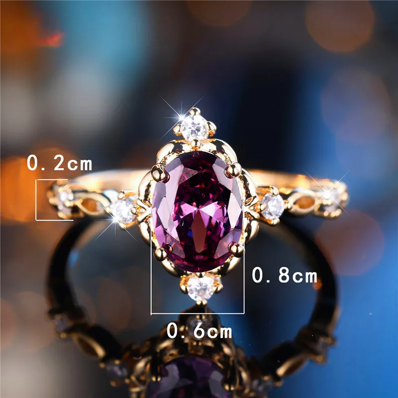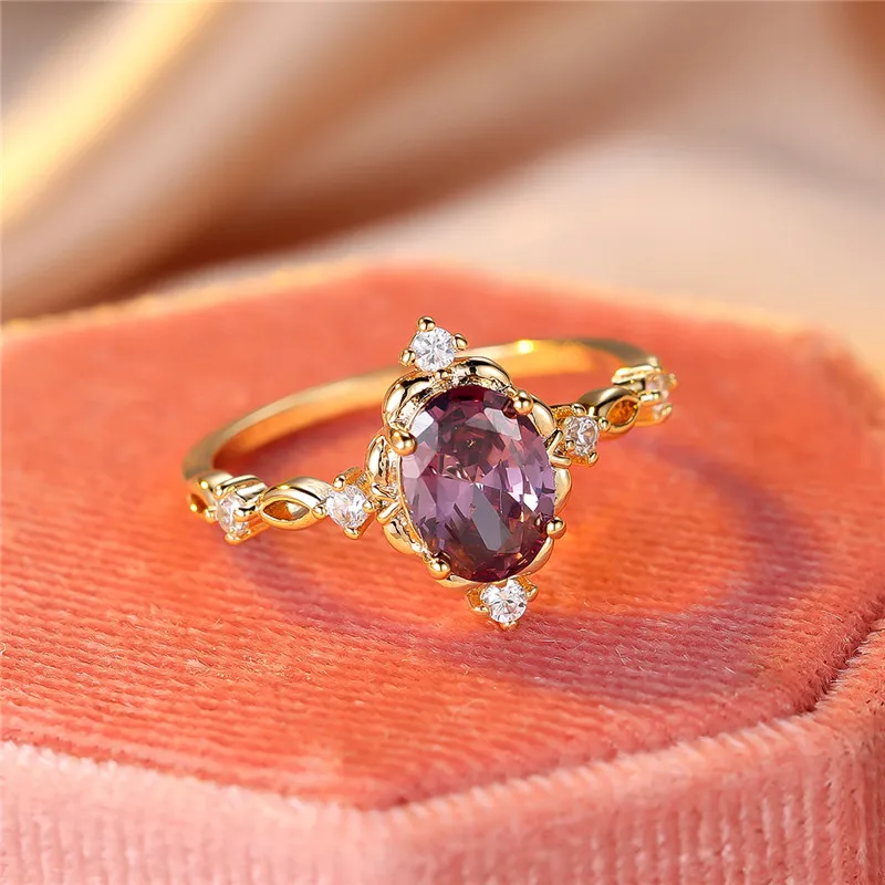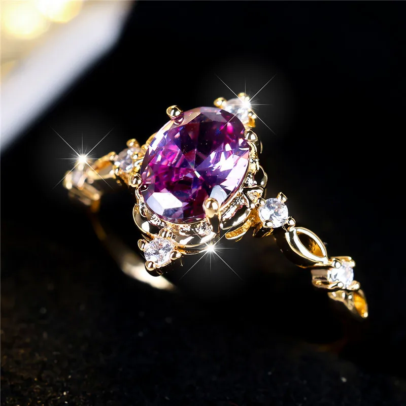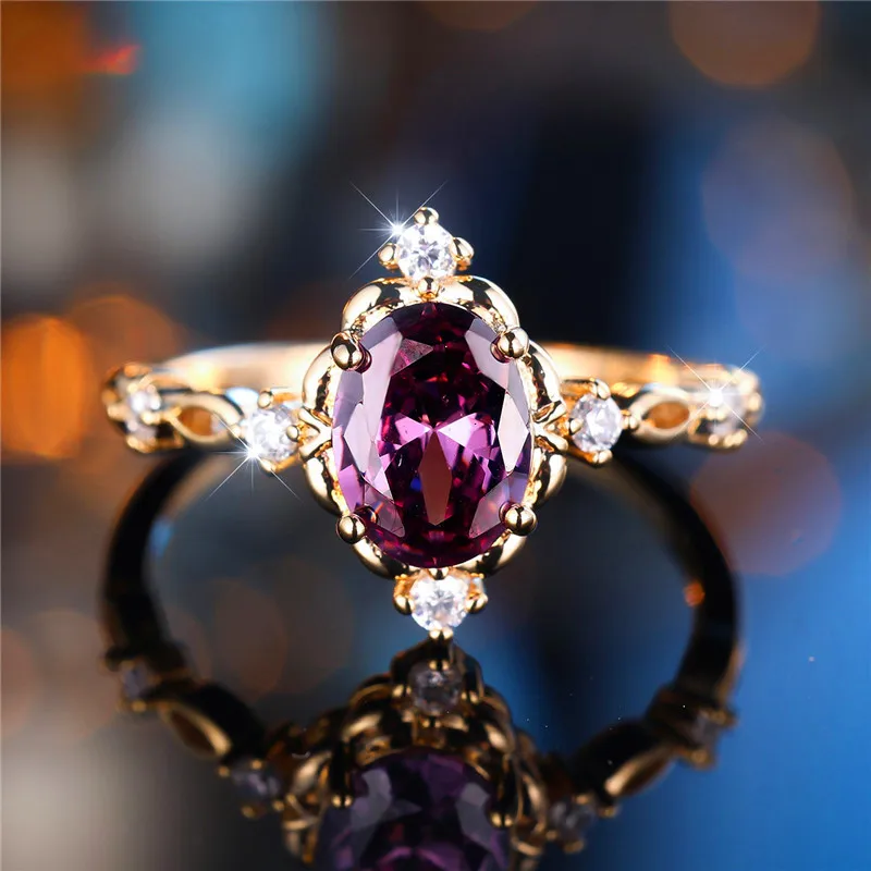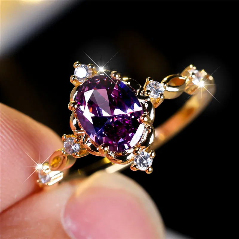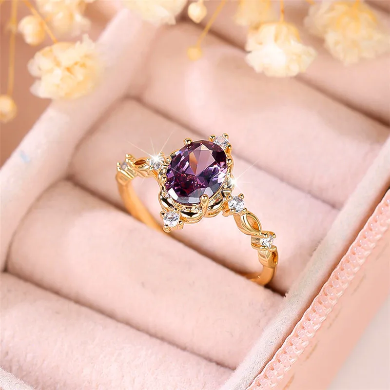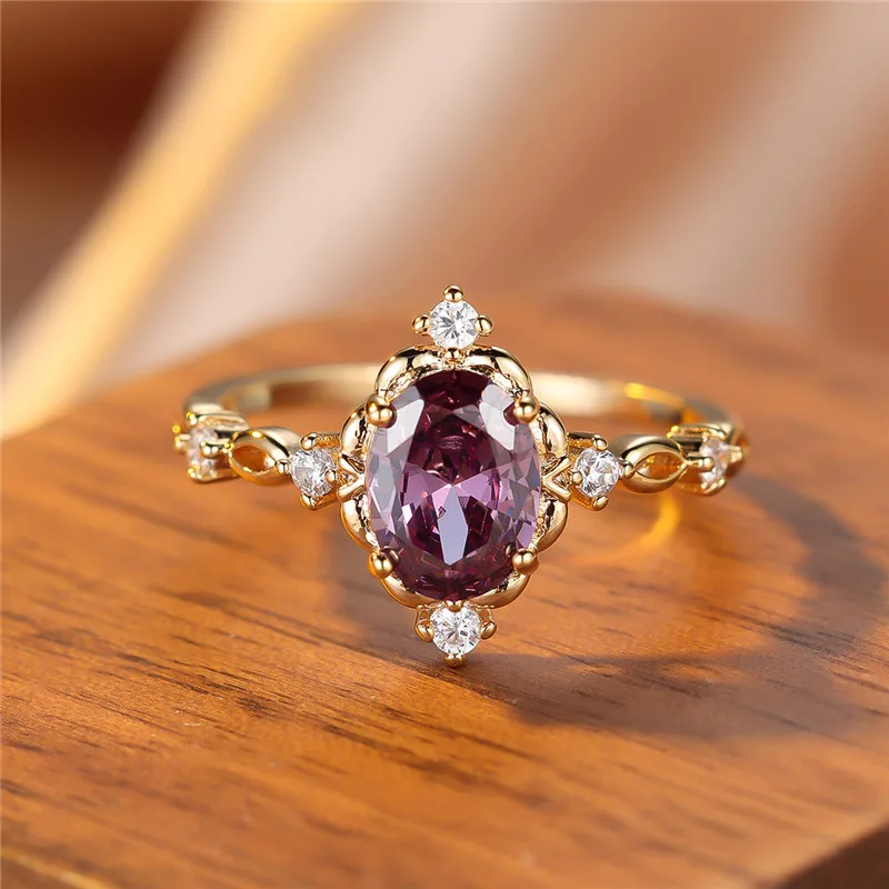 Elegant Design: Oval-cut purple zircon adds a royal touch.
